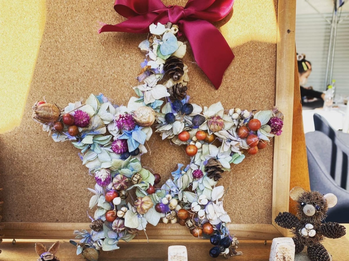 星形リースをドライフラワーで飾りつけ★MINI佐賀さまの感謝祭で作られた作品です!