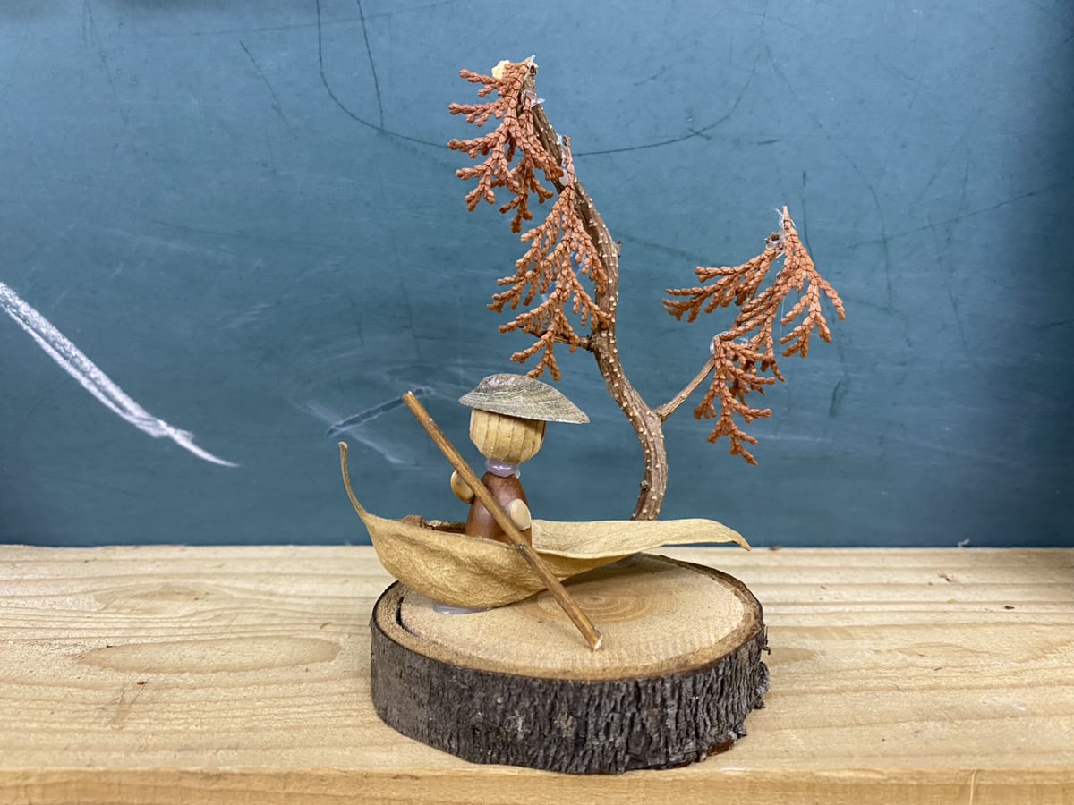柳川の川下りをイメージ!船の部分はアオギリの実を使っています