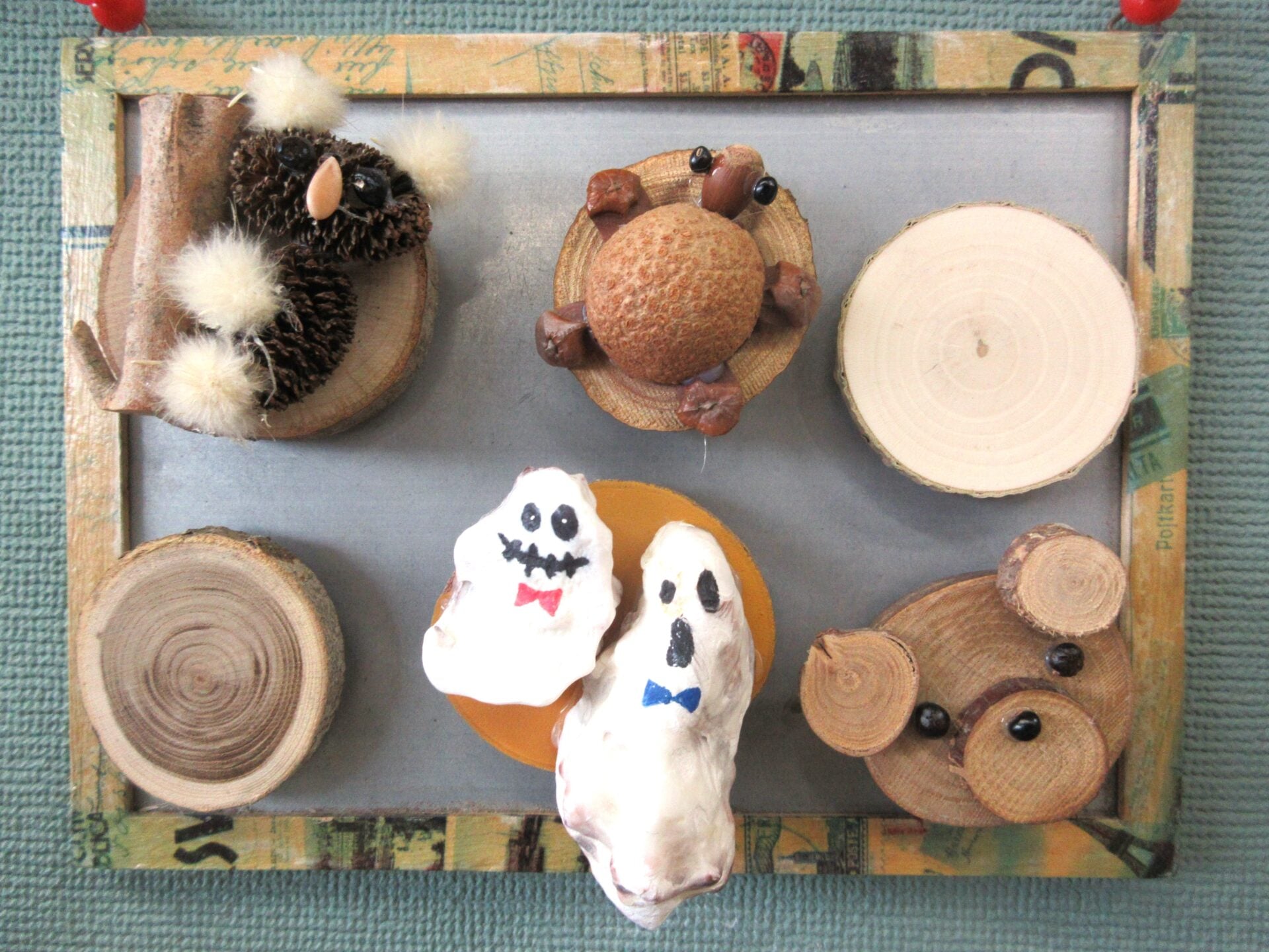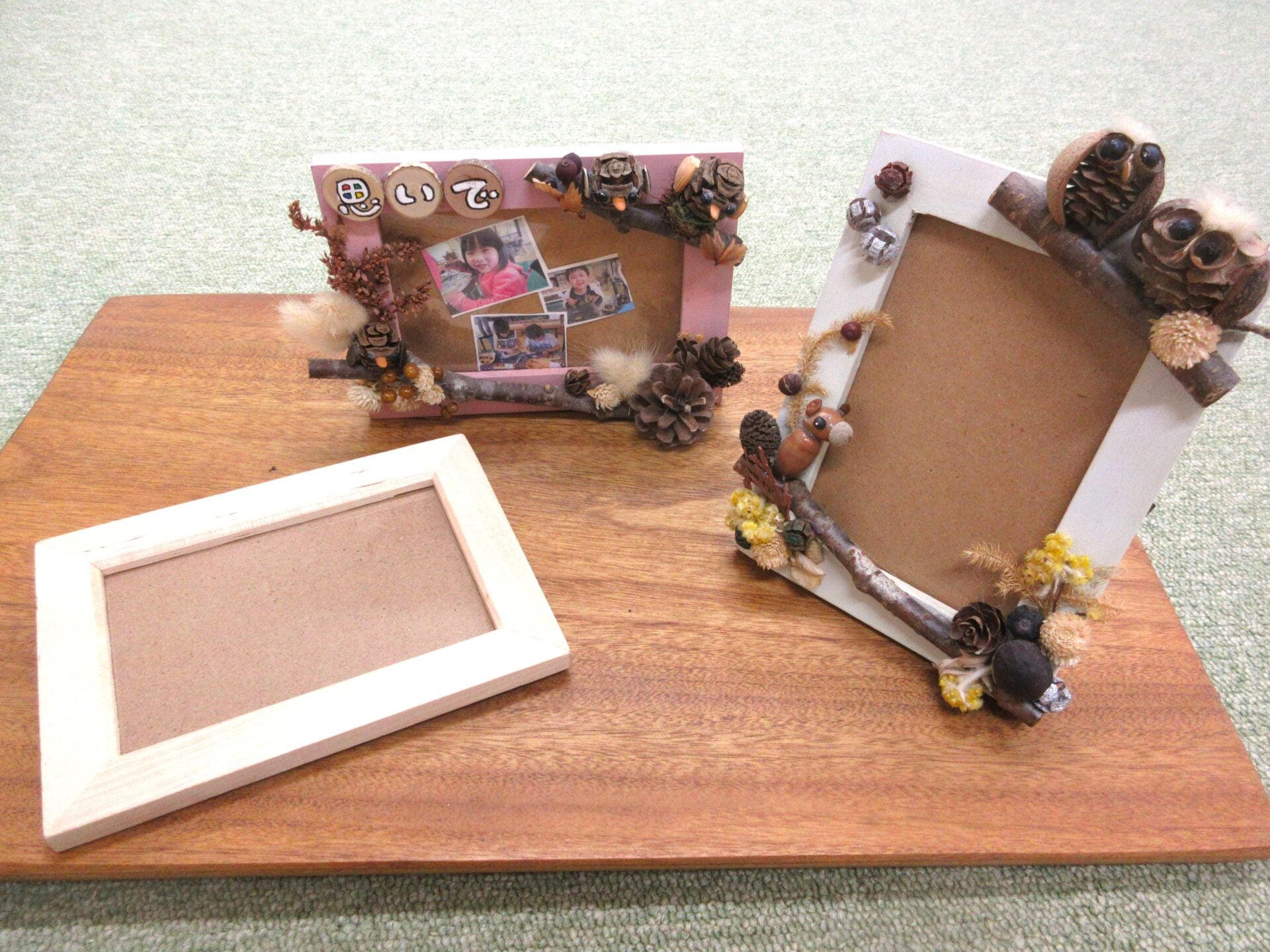 フォトフレームに木の実や枝を自由に飾り付けができます。