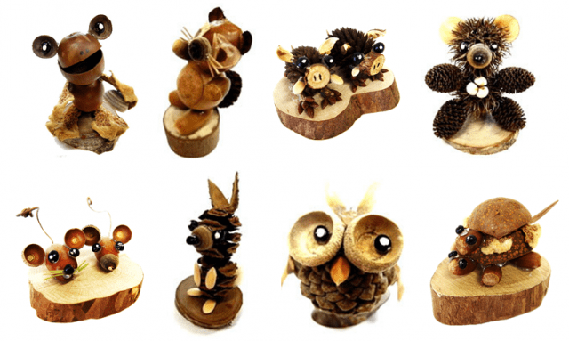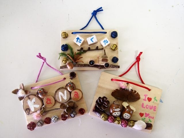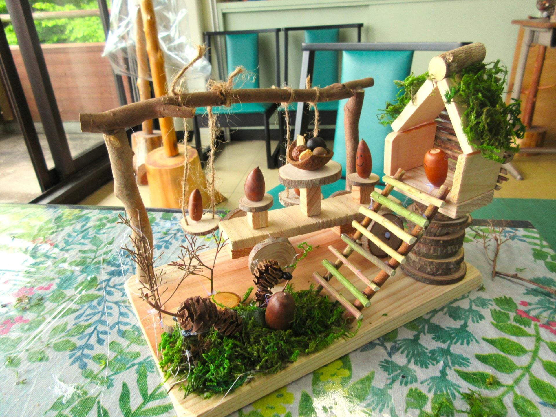 色々な種類の木の枝からお気に入りのものを選んで、どんぐりなどの木の実でオリジナルの小物をつくろう!