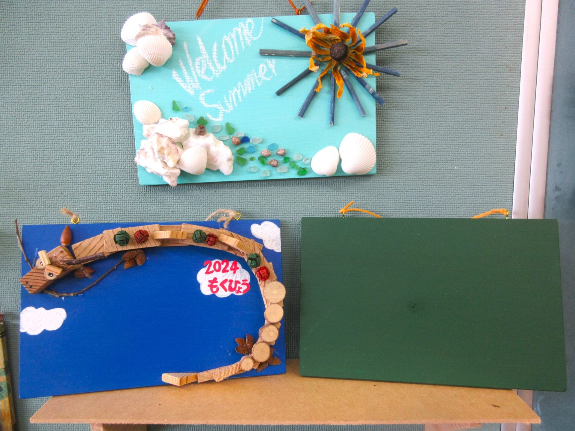 アートクラフト板の上に木片や木の実などを自由に組み合わせてつくることができます。夏休みの自由工作にもぴったりです!(大きさ:15㎝×23cm)