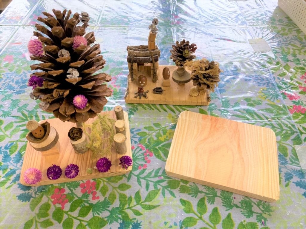 工作土台を選んで、その土台の上に自然の材料を使って作品を作っていきます。