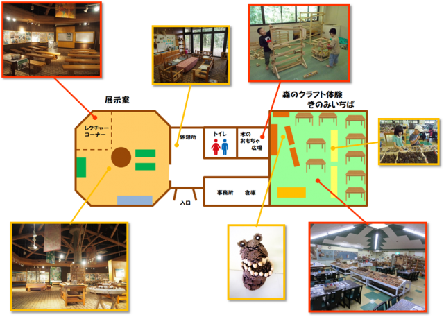 北山の自然・森のはたらき・林業のくらし、などのコーナーがあり、展示物を見ながら森林や林業について知ることができます。